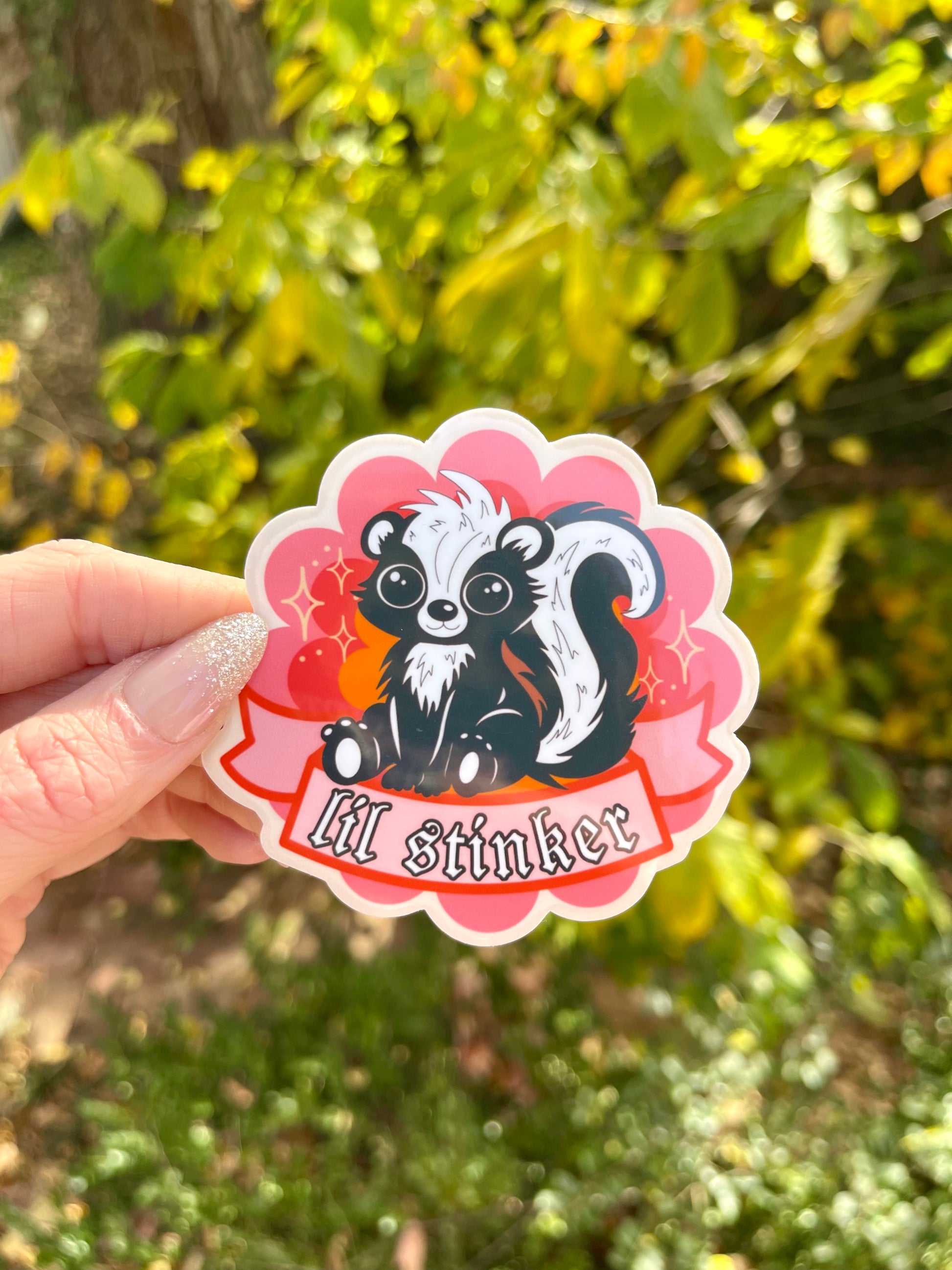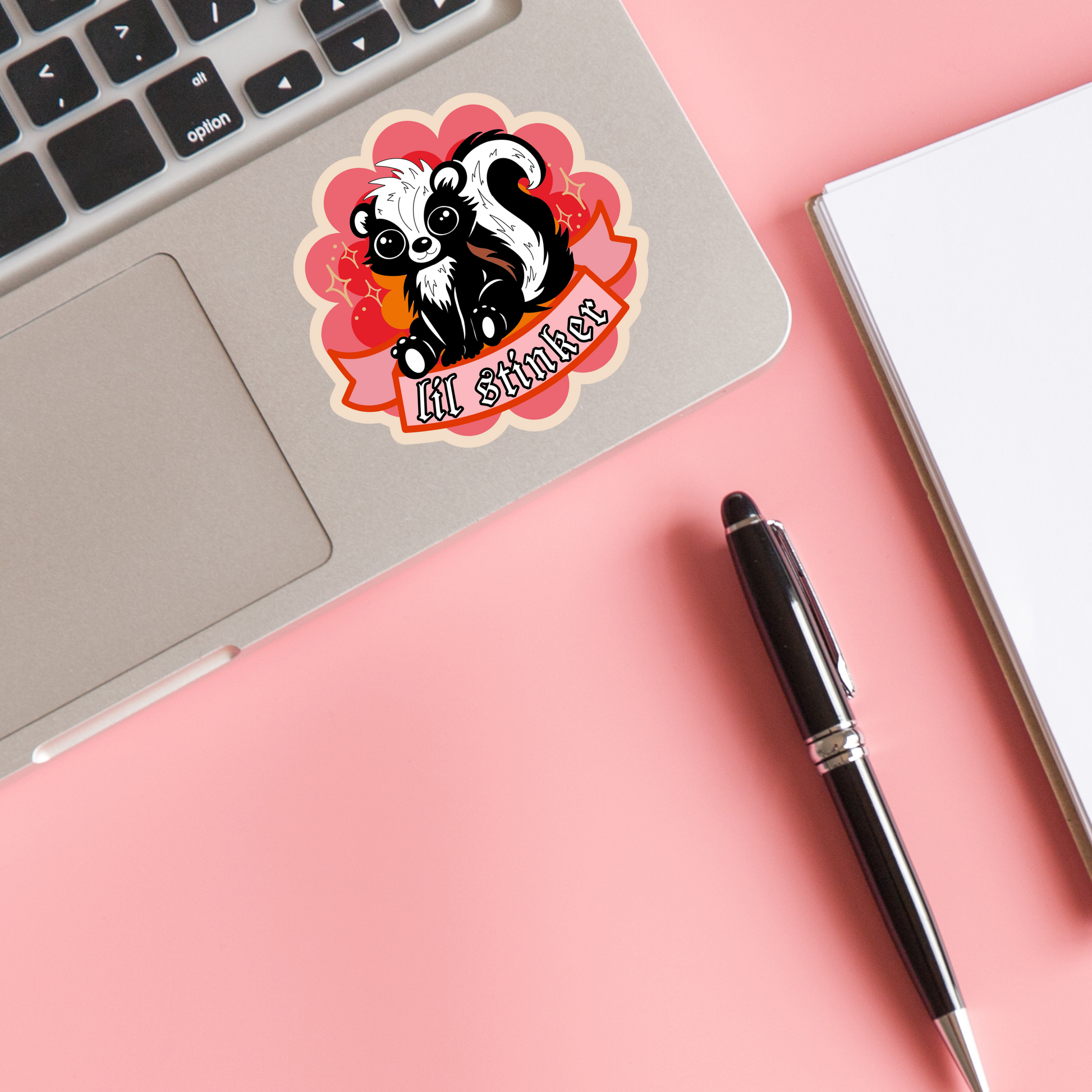this lil skunk is here to embrace the chaos and celebrate being a certified lil stinker. perfect for laptops, notebooks, journals, planners, and anywhere you want a tiny dose of menace.